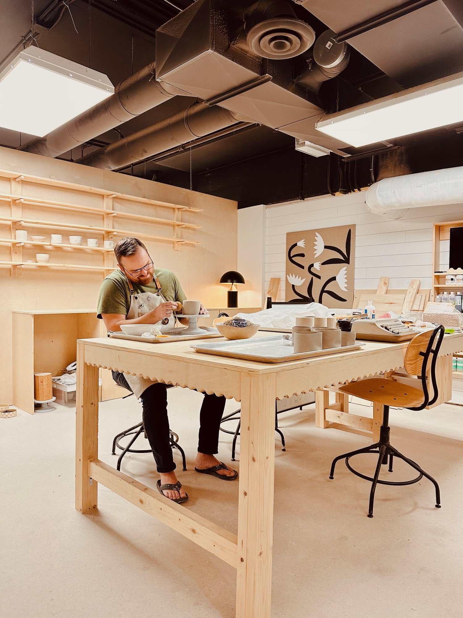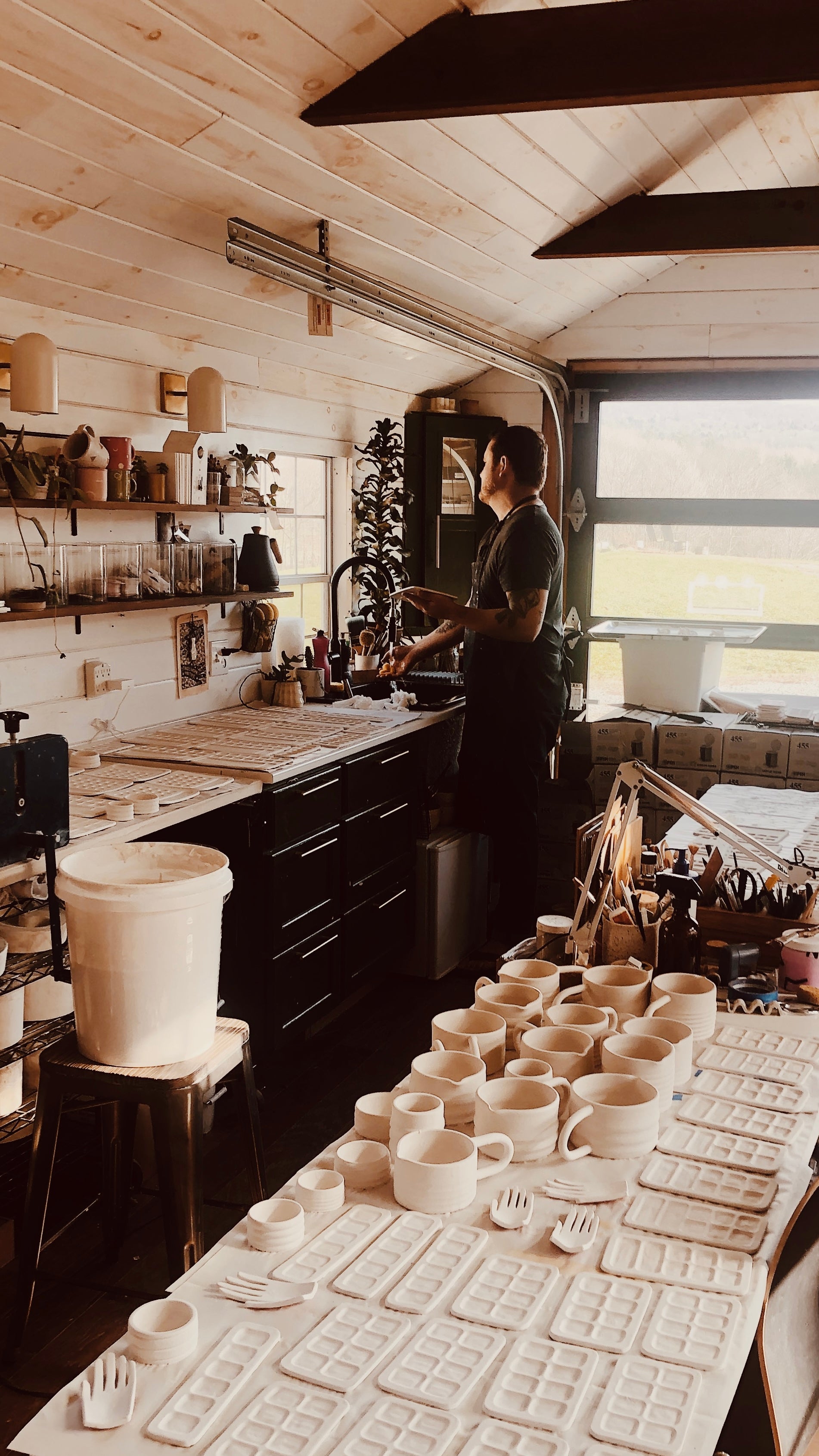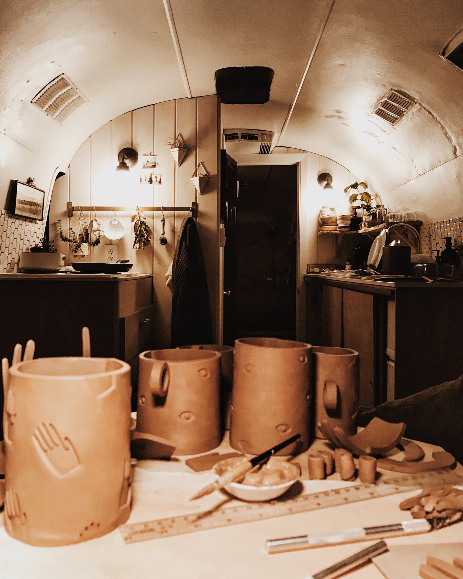 It was during our time in the airstream that we discovered our love for ceramics. Natasha, a full-time illustrator at the time, began selling her work on the side, and slowly, we started making pottery together.