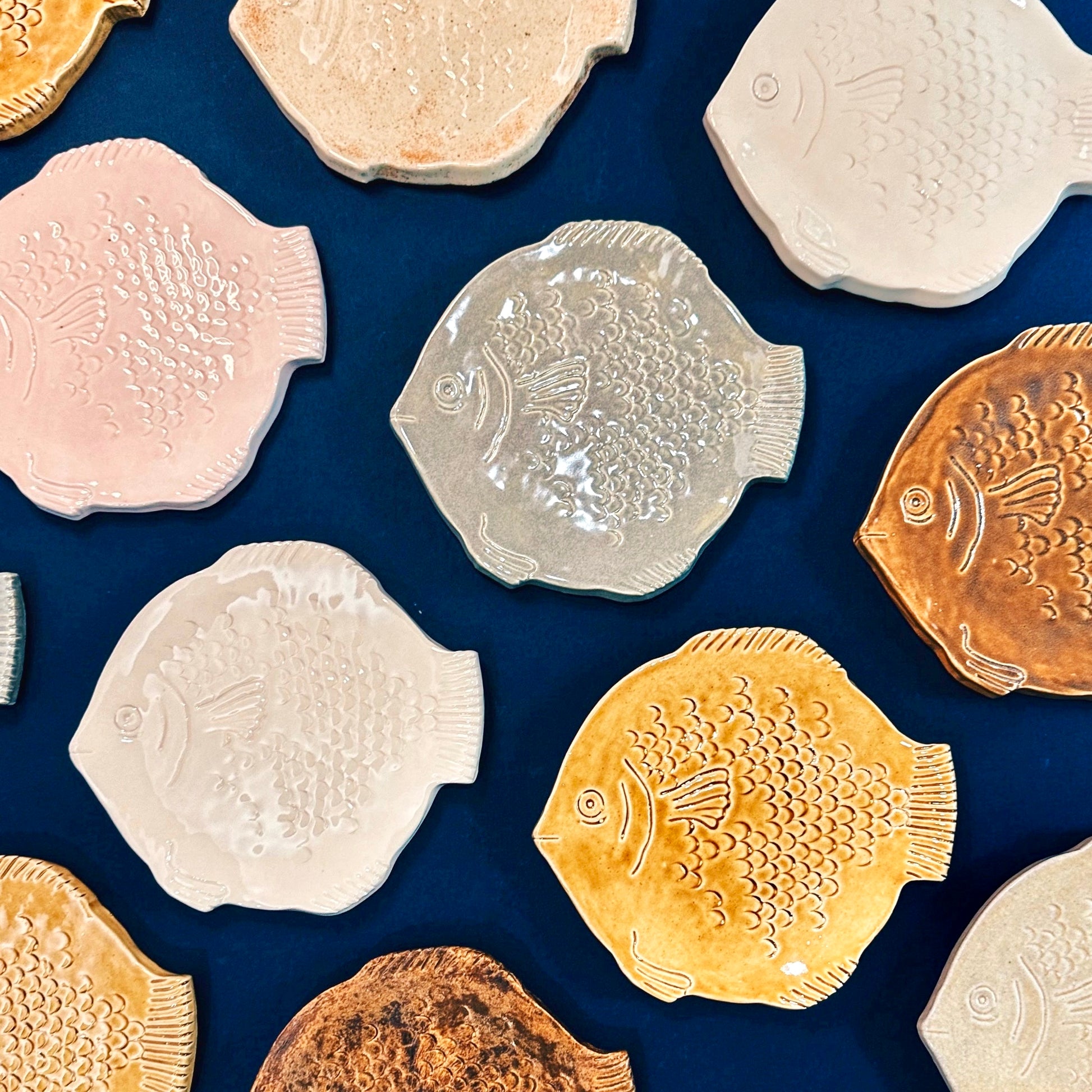 Handmade fish trays inspired by our Parisian wanderings. Frosted with your choice of carefully curated glazes in our Nova Scotia studio. Measures approximately 7" from nose to tail.