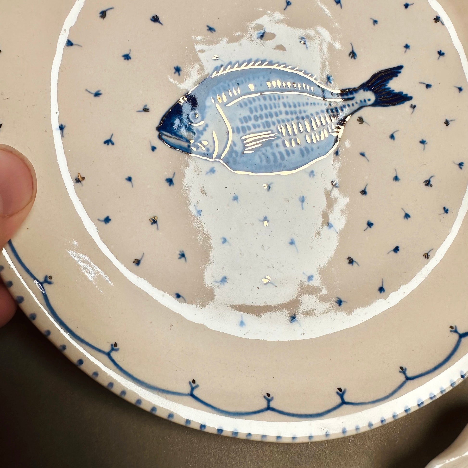 Gorgeous plates, wall-plates & trinket trays inspired by our Parisian wanderings. Perfect for the wall, kitchen, or dressing table. All are food safe, lead-free and hand-painted to blue & white perfection by Natasha in our Nova Scotia studio. Select pieces embellished with 10k gold lustre.