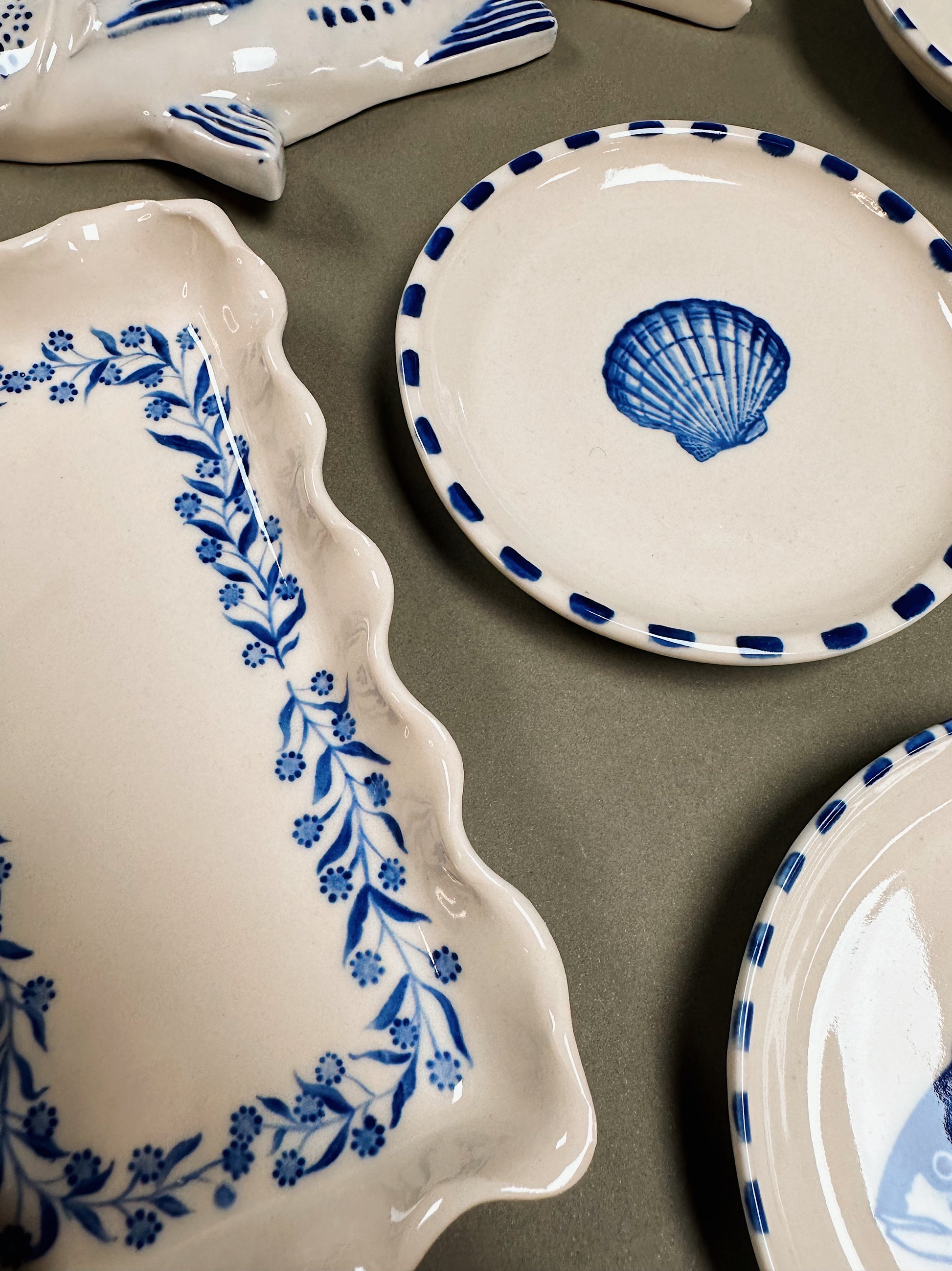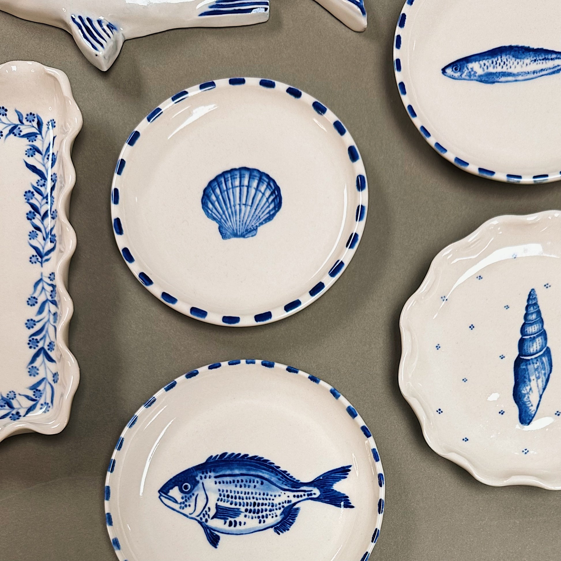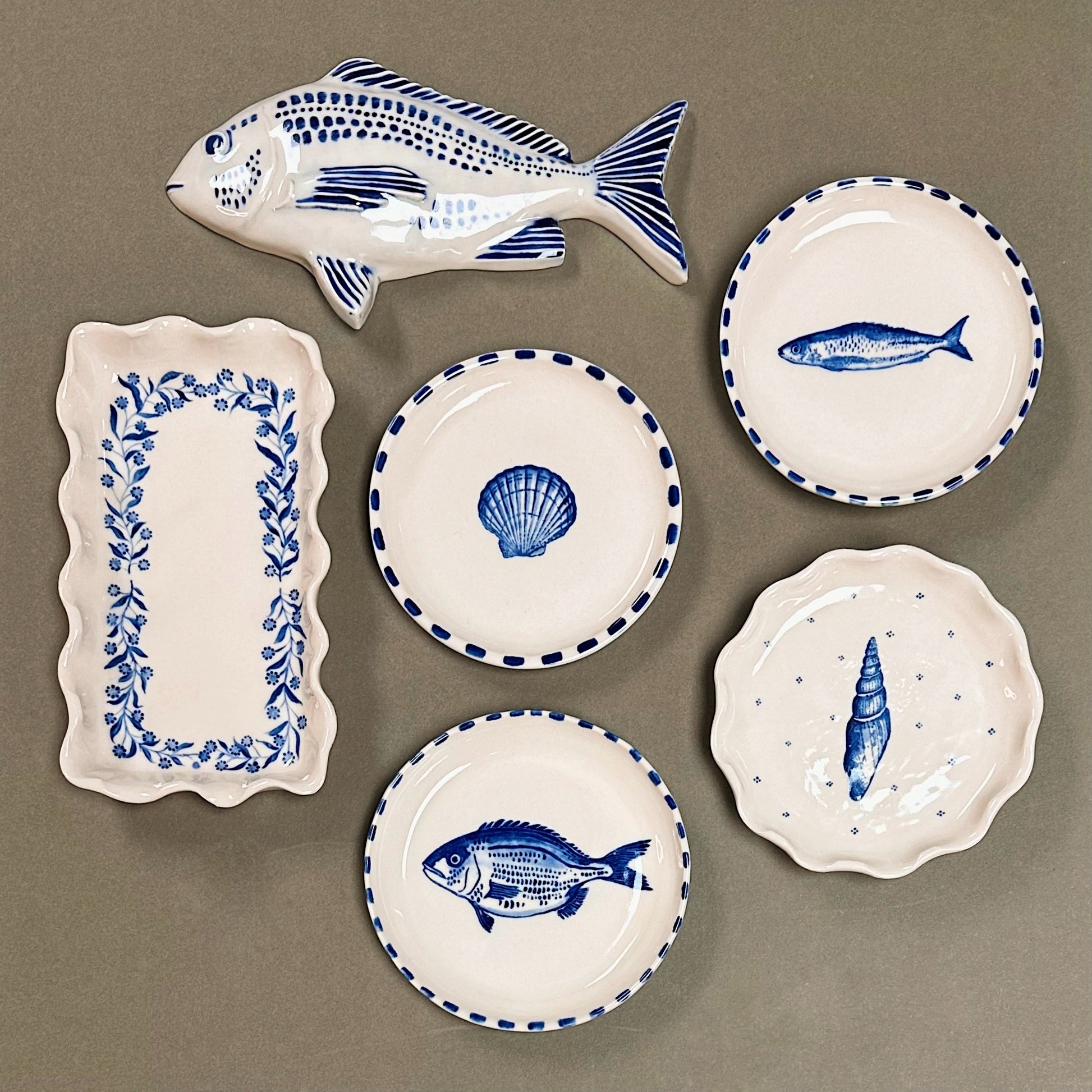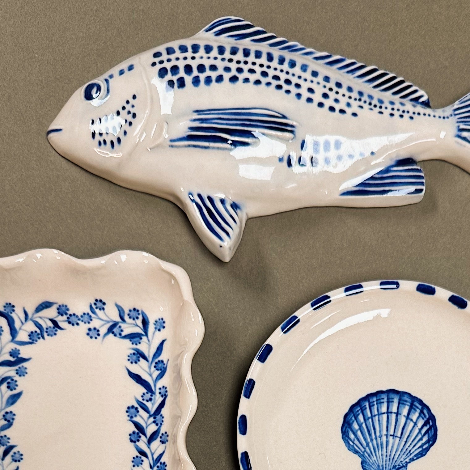 Gorgeous plates, wall-fish & trinket trays inspired by our Parisian wanderings. Perfect for the wall, kitchen, or dressing table. All are food safe, lead-free and hand-painted to blue & white perfection by Natasha in our Nova Scotia studio.
