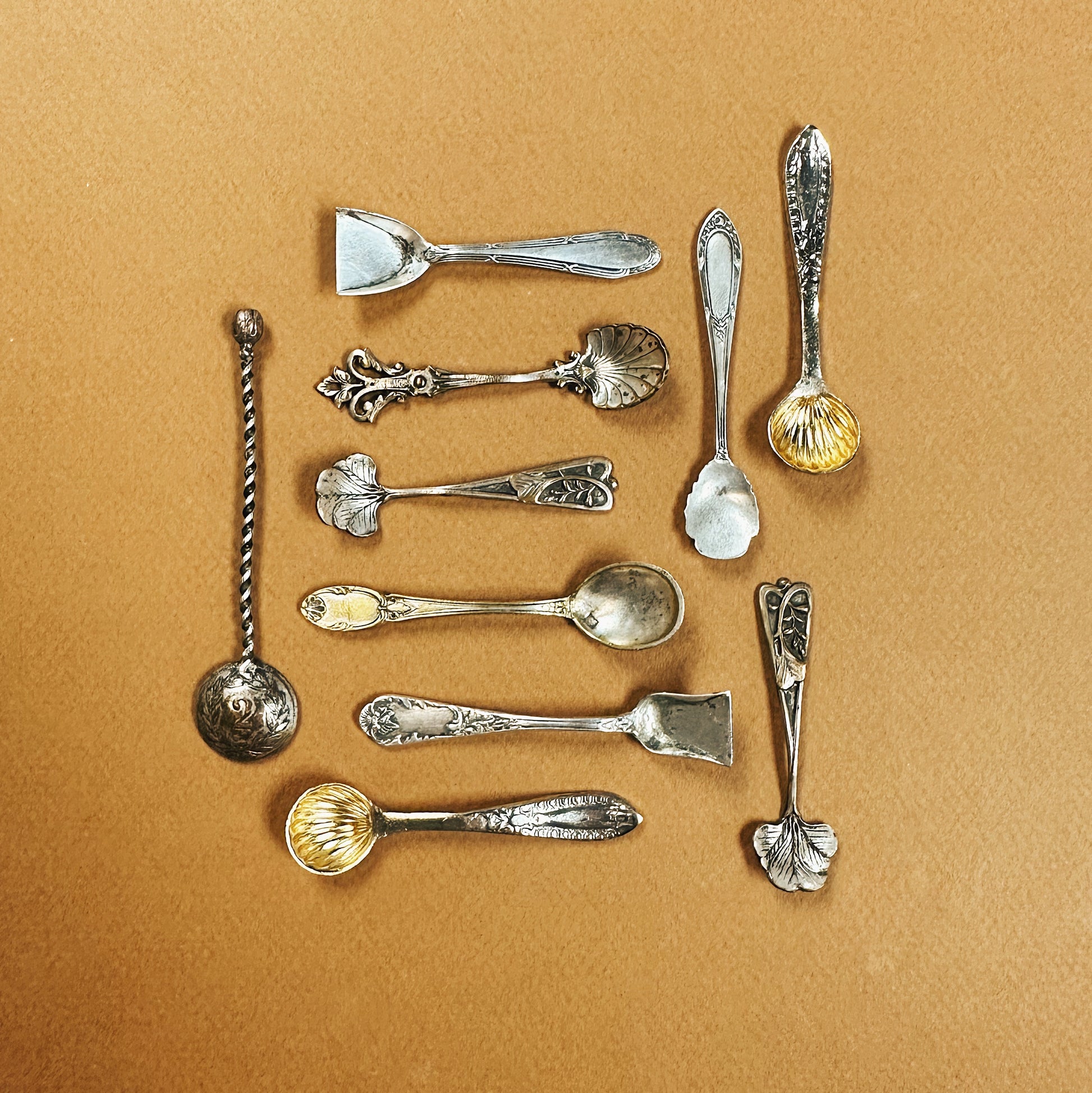 HAND-PAINTED HEIRLOOM SALT CELLAR & ANTIQUE SALT SPOON