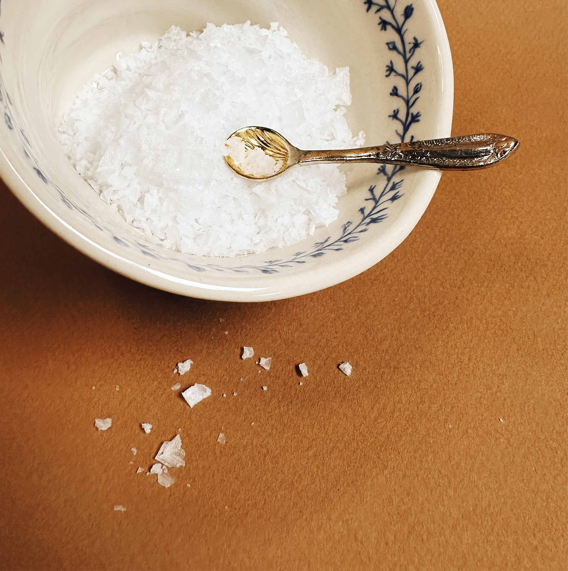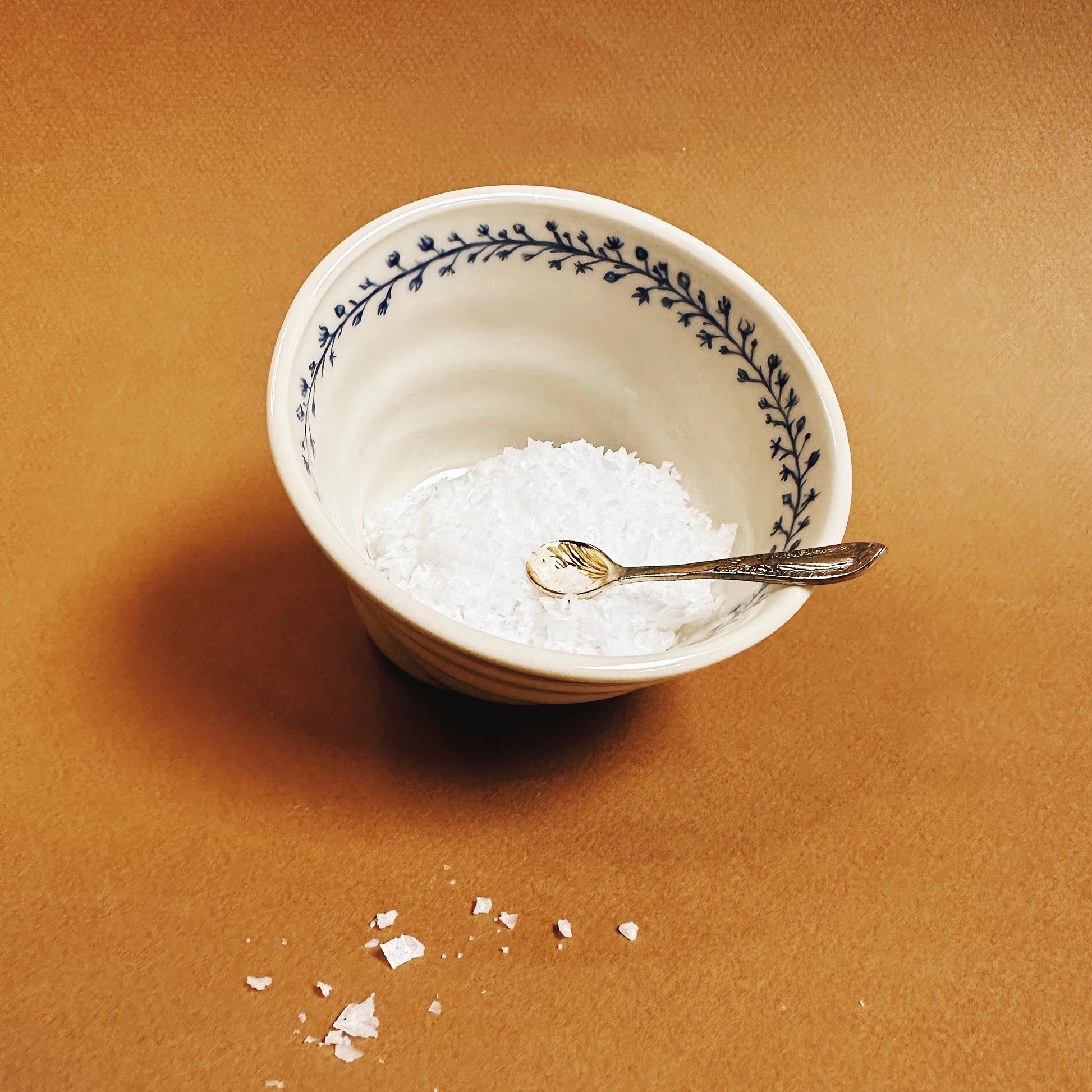 Handmade salt cellar inspired by our Parisian wanderings. Hand-painted with Delft blue flower border & frosted in a gorgeous milky glaze in our Nova Scotia studio. Measures approximately 4 1/4" across. Each comes with an antique salt spoon that we carefully selected from the Paris antique markets. Spoons come in assorted designs, we're unable to facilitate spoon preference so it will be a surprise, they're all so lovely!