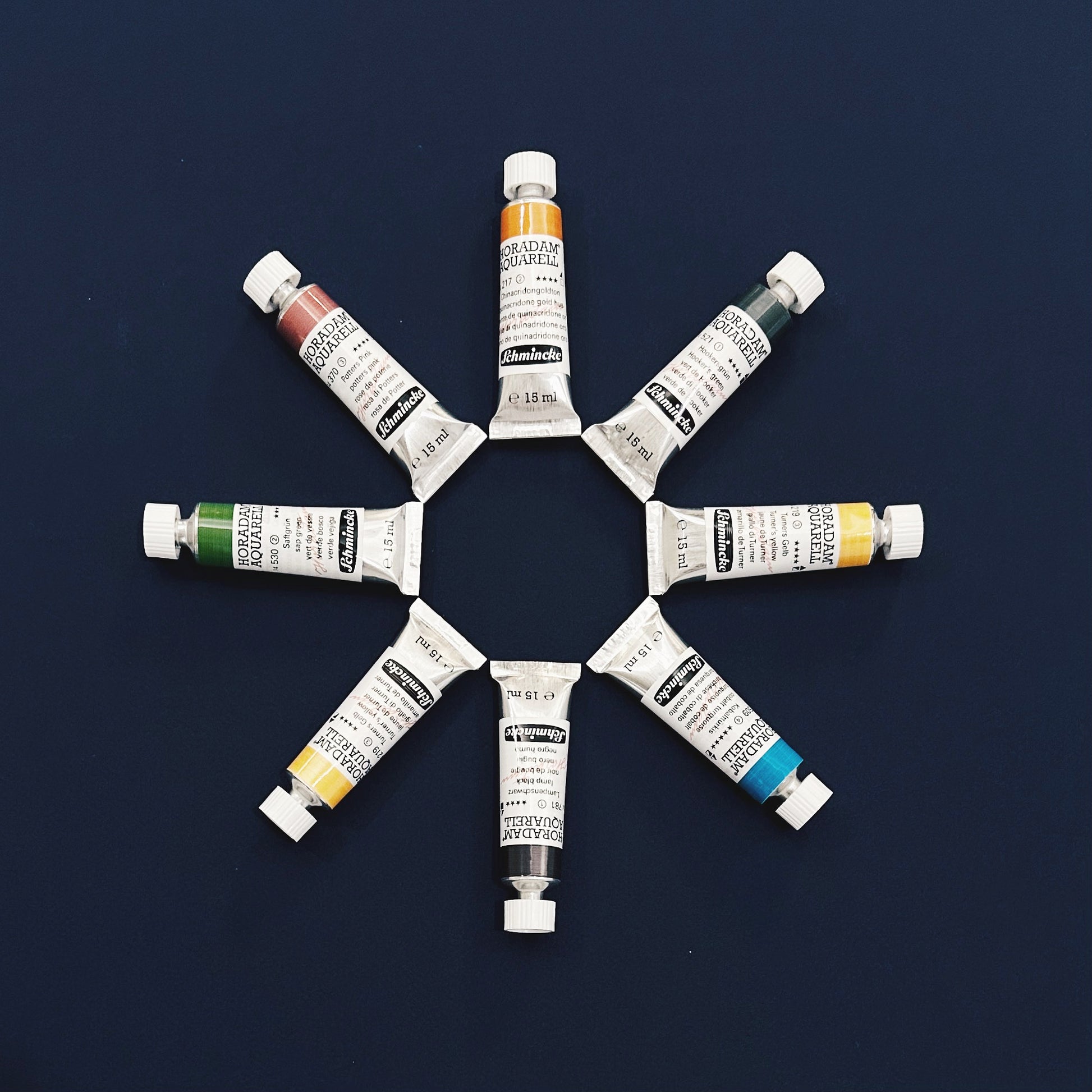 German-made Schmincke Horadam watercolors have been Natasha's favorite since she began her journey as a professional artist 15 years ago. Each colour has its own individually optimized formula and high lightfastness due to an extra-strict validation process. Fully reusable paint when dried on a palette means less waste and ease of use and colours are highly controllable even on soft watercolour paper. Only the best raw materials are used.