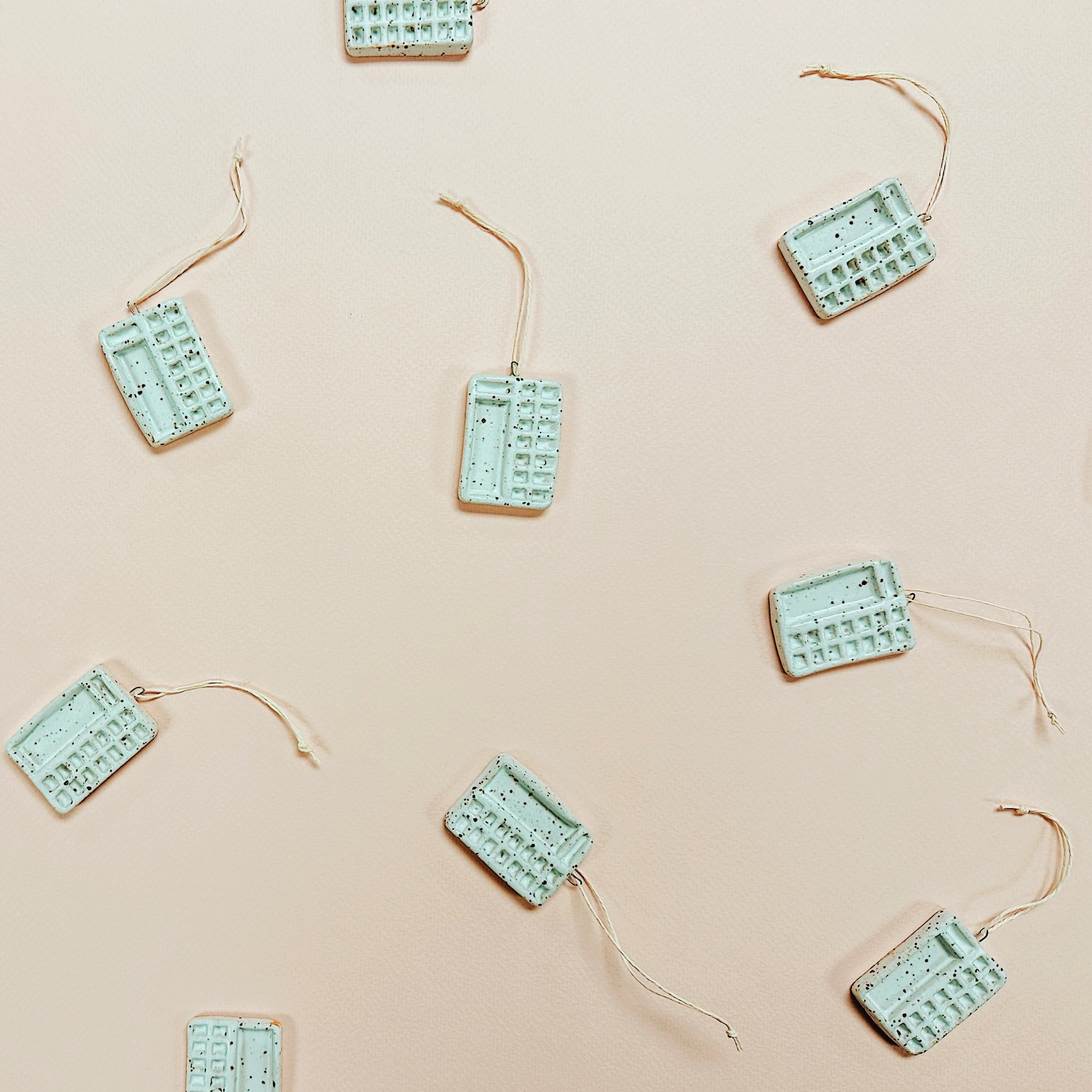 Ornaments are made by the Sugarhouse Ceramic Co. team and come hand-stamped with our logo. Each is one of a kind and may differ very slightly from photo.